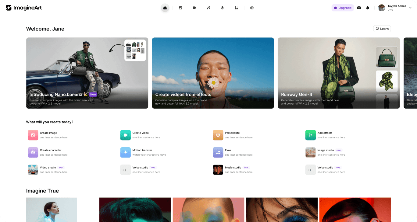 Before Imagine One, ImagineArt was a powerful but fragmented AI content generation platform. It featured multiple studios: Image, Video, Music, and Audio, and solutions that enabled end-to-end content creation like short videos with captions or avatar based clips.